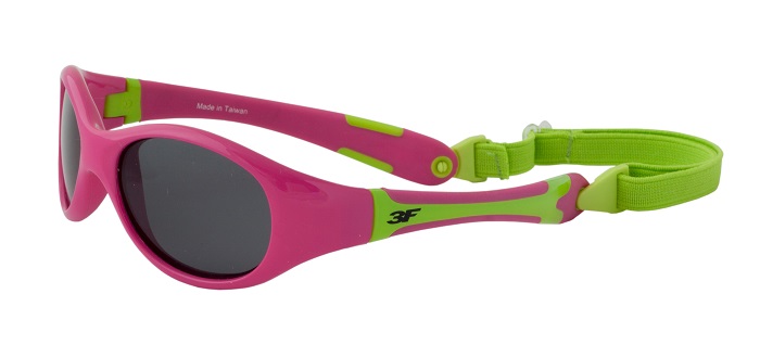 Rubber 1858. The playful design of the Rubber model in pink-green design leaves no one in doubt that it is a very popular model. Children´s rubber sunglasses are equipped with a polarizing filter to reduce unpleasant reflections. Sun filter category 3. As with all models, 3F filters for suppressing UVA, UVB and UVC radiation are a matter of course. 3F, unprecedented visibility. For better fastening, the Rubber 1858 model is equipped with an elastic band.